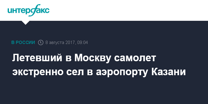 Москва. 8 августа. INTERFAX.RU - Самолет, летевший из Бугульмы (Татарстан) в Москву, совершил утром во вторник экстренную посадку в международном аэропорту Казани из-за несработавшей системы закрытия закрылок.
