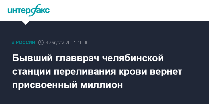 Бывший главврач челябинской станции переливания крови вернет присвоенный миллион