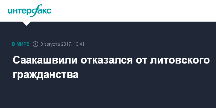 Москва. 8 августа. INTERFAX.RU - Бывший президент Грузии, бывший глава Одесской обладминистрации Украины Михаил Саакашвили заявил в Вильнюсе, что не претендует на получение литовского гражданства, хотя и благодарен за такое предложение, поступившее от некоторых политиков.