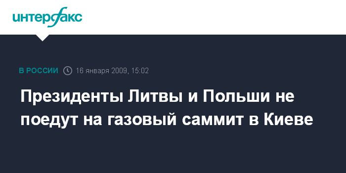 Вильнюс. 16 января. INTERFAX.RU - Президент Литвы Валдас Адамкус не примет участие во встрече в Киеве в пятницу, на которой будет обсуждаться российско-украинский газовый конфликт, сообщили агентству BNS советники президента.