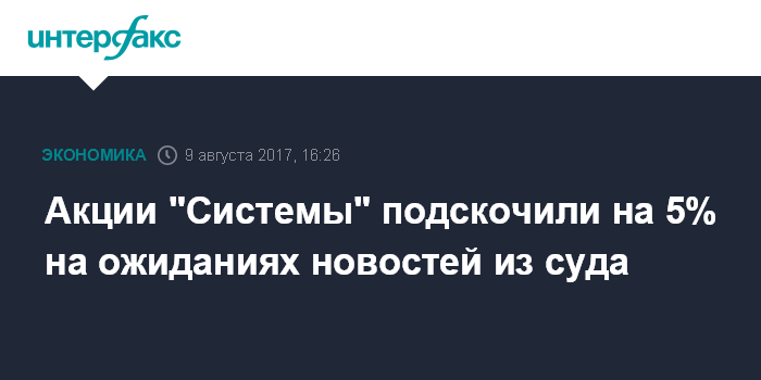 Акции "Системы" подскочили на 5% на ожиданиях новостей из суда