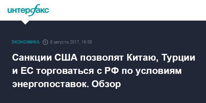 Москва. 9 августа. INTERFAX.RU - Президент США Дональд Трамп на прошлой неделе подписал закон "Меры противодействия врагам Америки путем санкций". Основную обеспокоенность российских властей и нефтегазовых компаний вызывает пункт о санкциях в отношении экспортных трубопроводов. И хотя конкретные санкции пока не введены, эксперты полагают, что само упоминание о них в законе даст шанс союзникам США, покупающим Российские энергоресурсы, торговаться с Россией об условиях поставок сырья.