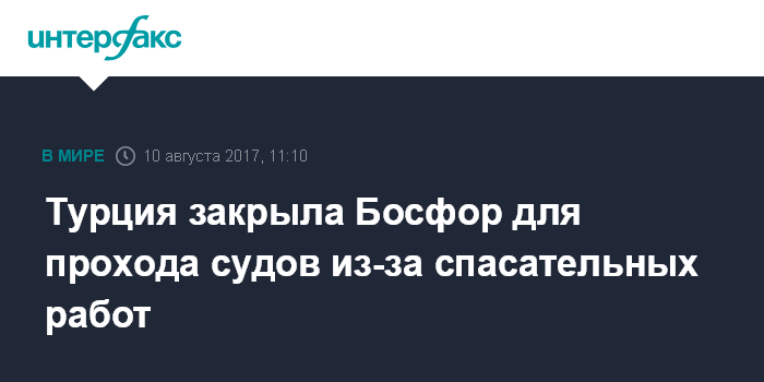 Москва. 10 августа. INTERFAX.RU - Турция в четверг закрыла пролив Босфор для движения судов в связи с проведением поисково-спасательных работ, сообщает агентство Anadolu.