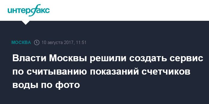 Москва. 10 августа. INTERFAX.RU - Столичный департамент информационных технологий разрабатывает сервис, который позволит автоматически определять по фотографии, что показывают индивидуальные приборы учета горячей и холодной воды. Об этом сообщает в четверг официальный сайт мэра Москвы.