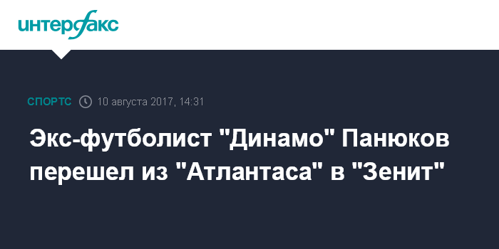 Экс-футболист "Динамо" Панюков перешел из "Атлантаса" в "Зенит"