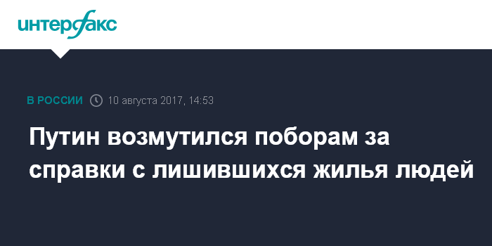 Путин возмутился поборам за справки с лишившихся жилья людей