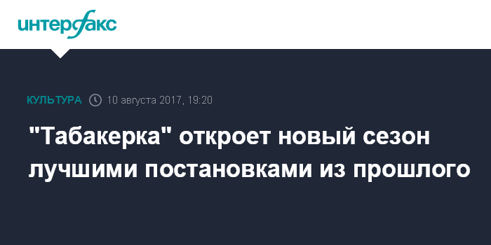Москва. 10 августа. INTERFAX.RU - "Табакерка" начнет новый театральный сезон 26 августа показом самых популярных постановок прошедшего, сообщили журналистам в пресс-службе.