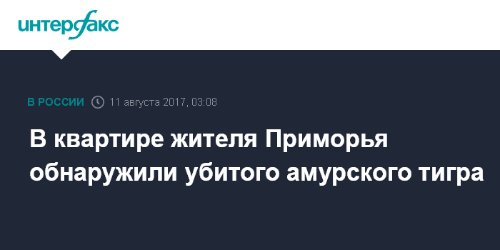 Москва. 11 августа. INTERFAX.RU - Полиция в Приморье возбудила уголовное дело по факту незаконной охоты на тигра, убитый хищник был найден в доме местного охотника.