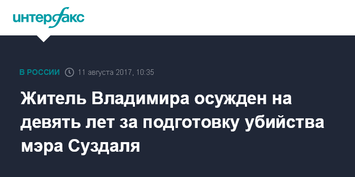 Житель Владимира осужден на девять лет за подготовку убийства мэра Суздаля