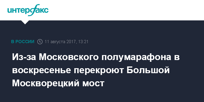 Из-за Московского полумарафона в воскресенье перекроют Большой Москворецкий мост