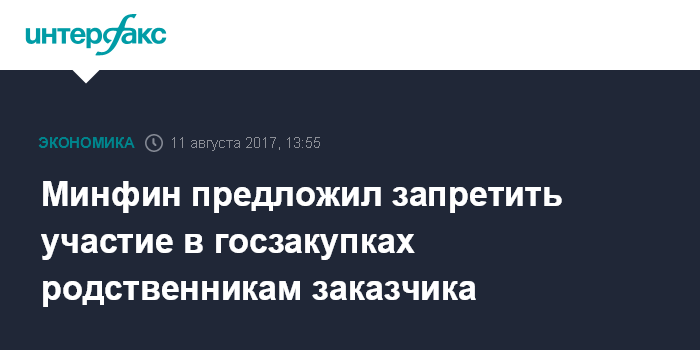 Минфин предложил запретить участие в госзакупках родственникам заказчика