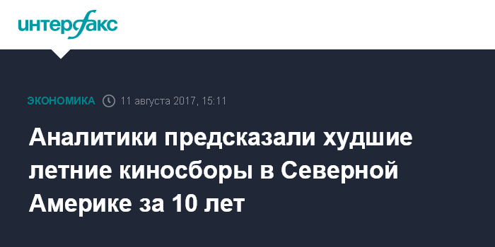 Летний киносезон в Северной Америке заканчивается в День труда, который в этом году выпадет на 4 сентября. До этого времени не ожидается громких релизов, и сборы за сезон могут составить всего $3,95 млрд - на 15% меньше, чем в 2016 году.