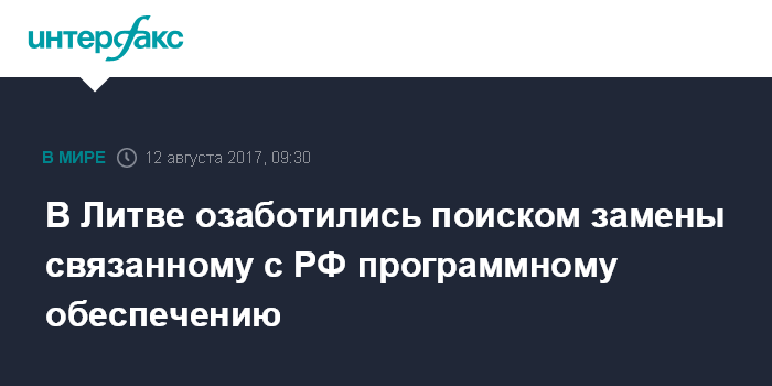 Москва. 12 августа. INTERFAX.RU - Литовские специалисты в области кибернетической безопасности ищут, чем заменить используемое в государственных ведомствах и на госпредприятиях программное обеспечение, которое связано с Россией.