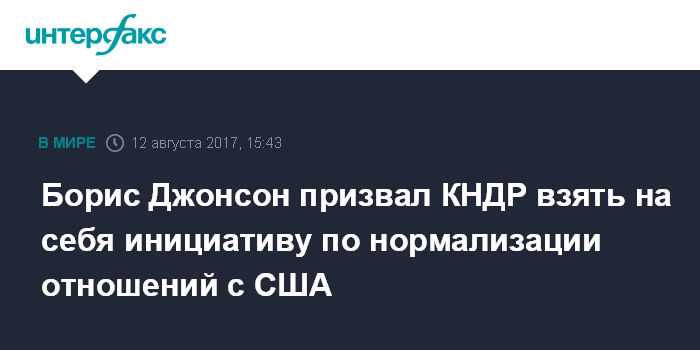 Москва. 12 августа. INTERFAX.RU - Северная Корея несет ответственность за обострение отношений с США, и потому именно она теперь должна предпринимать шаги по нормализации ситуации, заявил в субботу глава британского МИД Борис Джонсон.