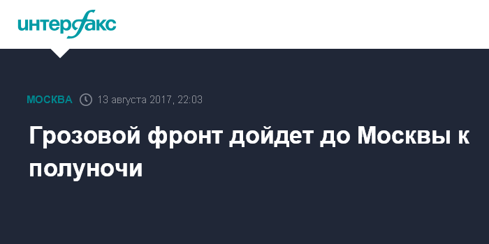 Москва. 13 августа. INTERFAX.RU - Грозовой фронт подходит к Москве с северо-запада, может достичь границ столицы (в пределах МКАД) после полуночи, следует из информации на официальном сайте Росгидромета.