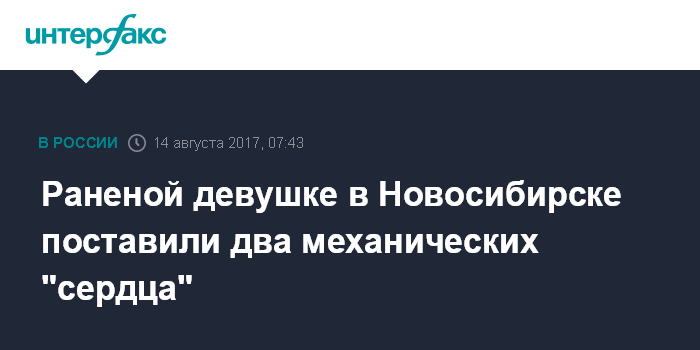 Москва. 14 августа. INTERFAX.RU - Новосибирские кардиохирурги впервые в российской практике установили пациентке два механических "сердца", сообщает пресс-служба Сибирского федерального биомедицинского исследовательского центра им.академика Е.Н.Мешалкина.