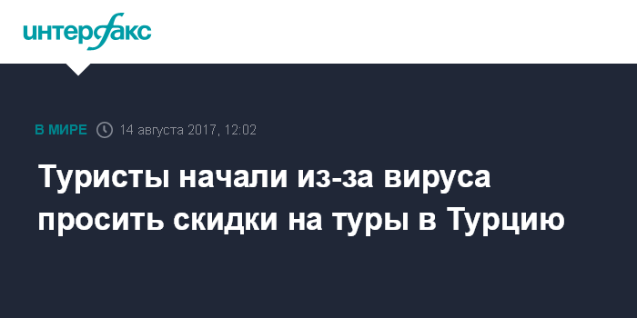 Москва. 14 августа. INTERFAX.RU - Туристы начали спрашивать о скидках на туры в Турцию, при этом турагенты сообщили о снижении спроса и на другие средиземноморские направления, пишет электронная газета Российского союза туриндустрии (РСТ) RATA-news.