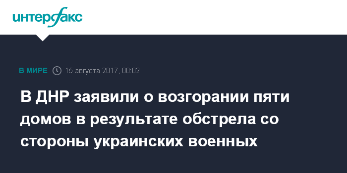 В ДНР заявили о возгорании пяти домов в результате обстрела со стороны украинских военных
