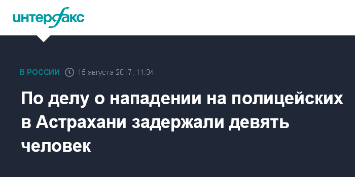 Москва. 15 августа. INTERFAX.RU - Девять человек находятся под стражей по делу о нападении на сотрудников полиции и Росгвардии в Астрахани, сообщил агентству "Интерфакс" во вторник помощник руководителя следственного управления СКР по области Андрей Хегай.