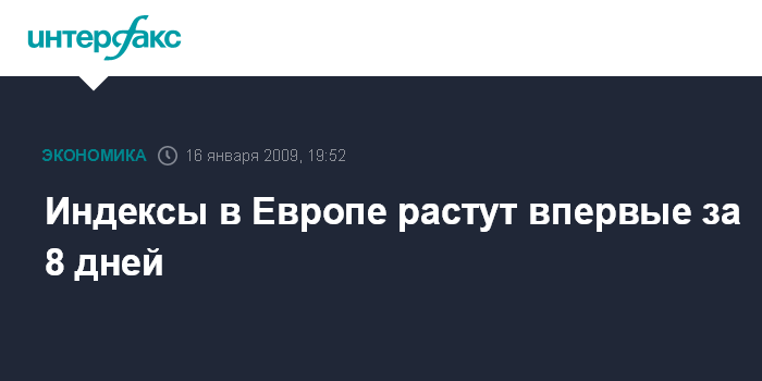 Лондон. 16 января. INTERFAX.RU - Фондовые индексы в Европе увеличиваются в пятницу впервые за последние восемь торговых сессий после того, как правительство США предприняло дальнейшие шаги для стабилизации финансовой системы страны, сообщило агентство Bloomberg.