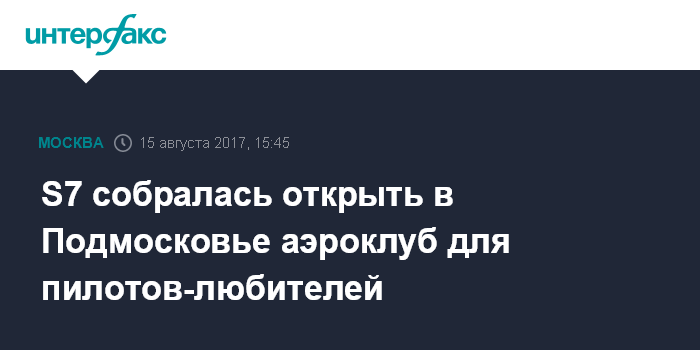 Москва. 15 августа. INTERFAX.RU - Группа S7 планирует открыть в подмосковном Ступино аэроклуб для пилотов-любителей. Об этом сообщил гендиректор авиакомпании "Сибирь" (входит в S7) Владимир Объедков, выступая на форуме "Территория смыслов".