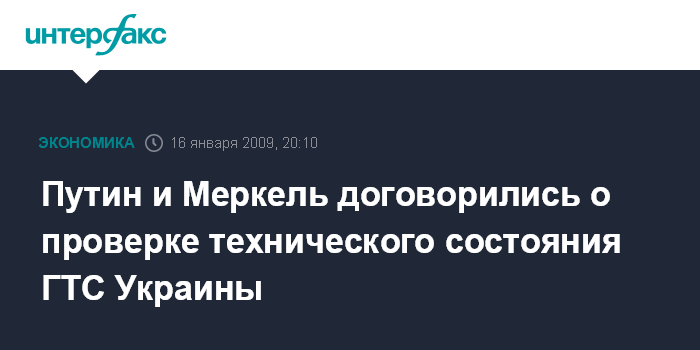 Берлин. 16 января. INTERFAX.RU - Премьер-министр России Владимир Путин сообщил, что договорился с канцлером Германии Ангелой Меркель о создании группы экспертов для проверки технического состояния газотранспортной системы Украины и определение оптимальных потоков экспорта российского газа в Европу.