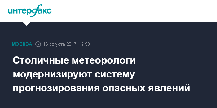 Москва. 16 августа. INTERFAX.RU - Росгидромет совместно с Российской академией наук (РАН) и МГУ имени Ломоносова создаст новую систему прогнозирования опасных погодных явлений для Московского региона.