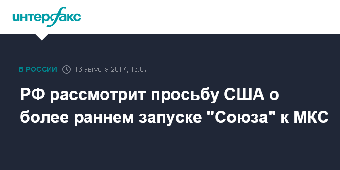 РФ рассмотрит просьбу США о более раннем запуске "Союза" к МКС