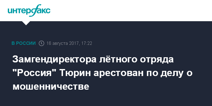 Замгендиректора лётного отряда "Россия" Тюрин арестован по делу о мошенничестве