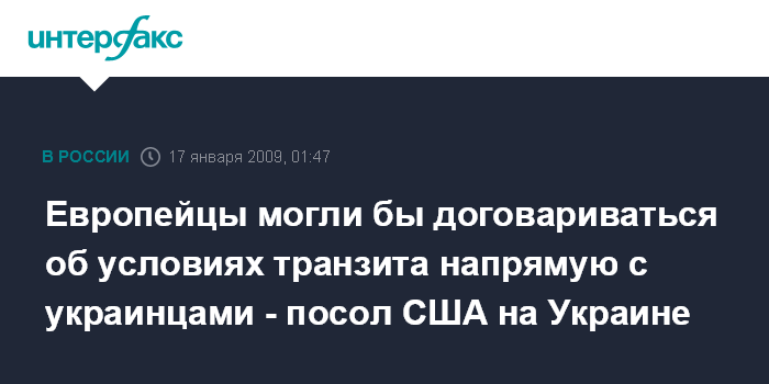 "Мы осуждаем использование отключения поставок в коммерческих спорах и призываем все три стороны договориться о немедленном возобновлении поставок Украине и остальной Европе. Такова позиция администрации Буша, такой же, вероятнее всего, будет и позиция администрации Обамы", - отметил У.Тейлор.