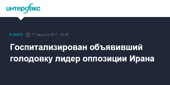 Москва. 17 августа. INTERFAX.RU - Бывший спикер иранского Меджлиса (парламента) и оппозиционный лидер Мехди Кярруби, находящийся под домашним арестом, госпитализирован в четверг спустя почти суток после того, как объявил голодовку, сообщают иранские СМИ.