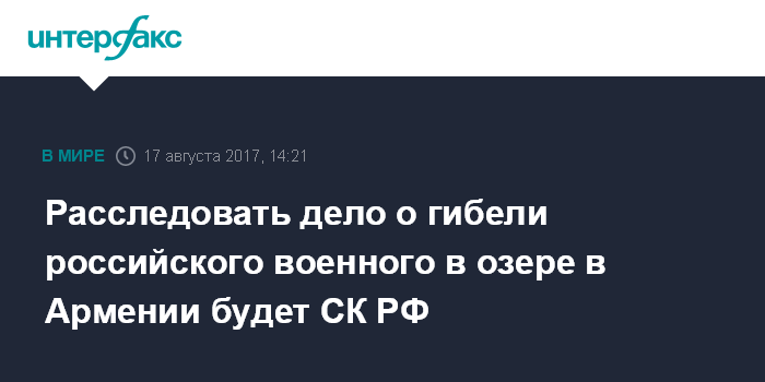 Москва. 17 августа. INTERFAX.RU - Дело о гибели военнослужащего российской военной базы в Гюмри, утонувшего в озере Севан, передано в Следственный комитет РФ. Об этом сообщила в четверг "Интерфаксу" советник главы СК Армении Сона Трузян.