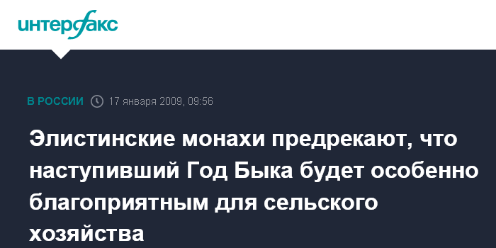 "Год земляного Быка - это самое благоприятное время для того, чтобы заниматься сельским хозяйством, внедрять передовые технологии земледелия и животноводства", - сообщила агентству "Интерфакс-Юг" представитель Центрального хурула "Золотая обитель Будды Шакьямуни" Лариса Бодмаева.