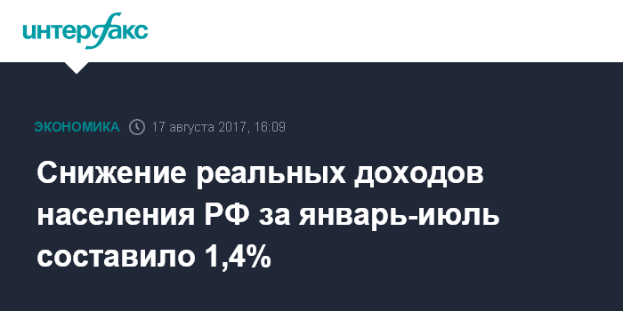 Снижение реальных доходов населения РФ за январь-июль составило 1,4%