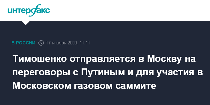 Лондон. 17 января. INTERFAX.RU - Премьер-министр Украины Юлия Тимошенко в субботу отбывает в Москву, где проведет переговоры с главой российского правительства Владимиром Путиным и примет участие в Московском газовом саммите.