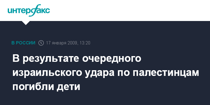 Москва. 17 января. INTERFAX.RU - В результате очередного удара израильской артиллерии по территории ооновской школы в районе севернее палестинского города Газа в субботу утром погибли двое детей, сообщает телекомпания Си-Эн-Эн.