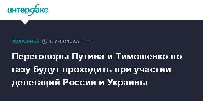 Москва. 17 января. INTERFAX.RU - В переговорах премьер-министров России и Украины Владимира Путина и Юлии Тимошенко по газовой проблеме примут участие руководитель ОАО "Газпром" и НАК "Нафтогаз Украины", сообщили "Интерфаксу" в пресс-службе правительства РФ.