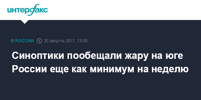 На юге европейской территории России держится сильная жара - до 40 градусов. В некоторых регионах, в том числе Краснодарском крае, вероятно возникновение кратковременных, но сильных гроз, добавил директор Гидрометцентра. "Ослабления жары там не прогнозируется в течение всей следующей рабочей недели", - сказал собеседник агентства.