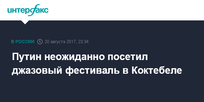 Москва. 20 августа. INTERFAX.RU - Президент России Владимир Путин вечером в воскресенье неожиданно приехал на международный джазовый фестиваль Koktebel Jazz Party.