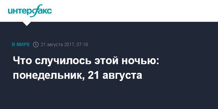 Москва. 21 августа. INTERFAX.RU - Краткая сводка событий, произошедших к утру: