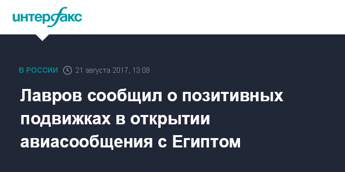 Москва. 21 августа. INTERFAX.RU - Глава МИД РФ Сергей Лавров заявил, что в ближайшее время станет ясно, когда возобновится авиасообщение с Египтом.