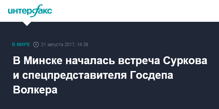Москва. 21 августа. INTERFAX.RU - Министерство иностранных дел Белоруссии сообщает о проходящей в настоящее время в Минске встрече помощника президента России Владислава Суркова и спецпредставителя США по Украине Курта Волкера.