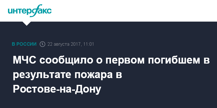 Москва. 22 августа. INTERFAX.RU - Спасатели на месте пожара в центе Ростова-на-Дону обнаружили тело погибшего, сообщили агентству "Интерфакс" в пресс-службе ГУ МЧС России по Ростовской области.