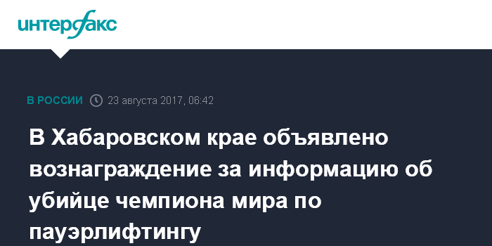 В Хабаровском крае объявлено вознаграждение за информацию об убийце чемпиона мира по пауэрлифтингу