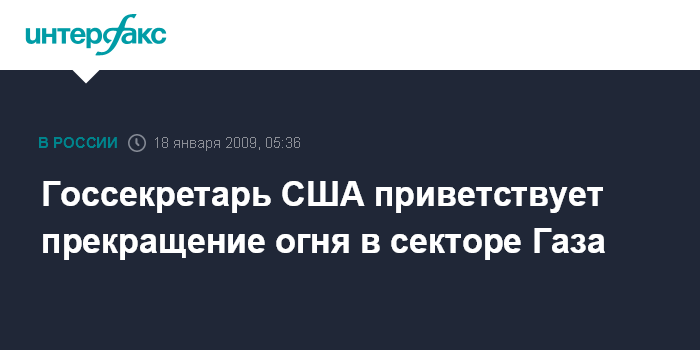 "США приветствуют приостановку столкновений в Газе, объявленной Израилем и ожидает, что все стороны немедленно прекратят нападения и враждебные действия", - отмечает госсекретарь США.
