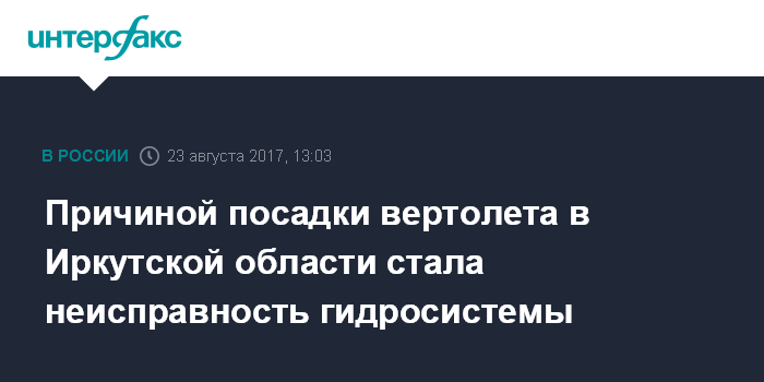 Причиной посадки вертолета в Иркутской области стала неисправность гидросистемы