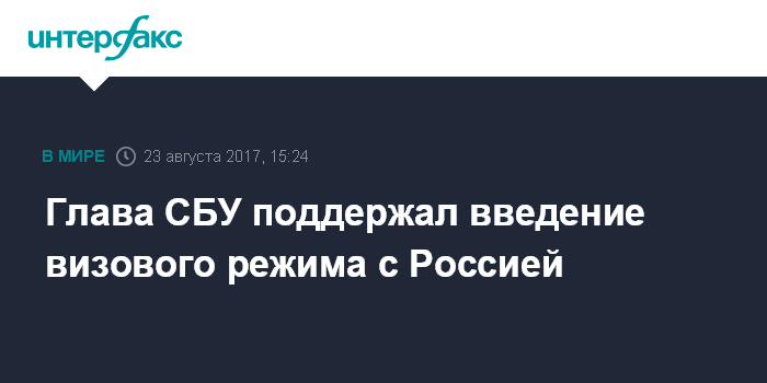 Москва. 23 августа. INTERFAX.RU - Руководитель Службы безопасности Украины Василий Грицак высказался за введение визового режима с РФ.