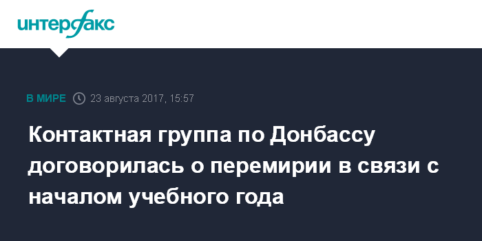 Москва. 23 августа. INTERFAX.RU - Участники контактной группы по Украине согласовали в Минске условия очередного перемирия, приуроченного к началу нового учебного года. Об этом сообщил "Интерфаксу" источник в группе по организации переговоров.