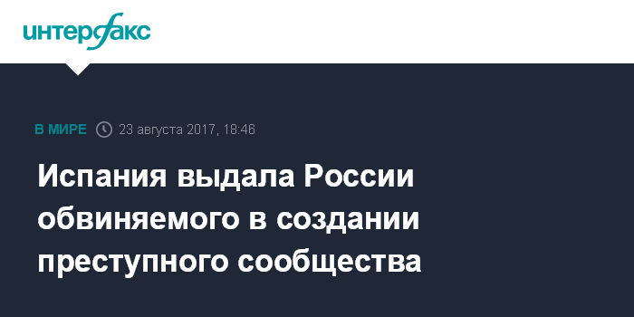 "Сегодня, 23 августа, по требованию генеральной прокуратуры РФ компетентные органы Королевства Испания экстрадируют в Россию гражданина РФ Константина Коновченко", - сказали "Интерфаксу" в пресс-службе.