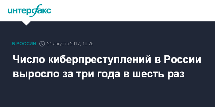 Москва. 24 августа. INTERFAX.RU - В России отмечен существенный рост киберпреступности с начала года, а за последние три года она выросла в шесть раз, сообщил генеральный прокурор РФ Юрий Чайка.
